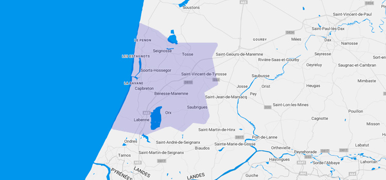 Nous nous déplaçons sur 11 communes du Sud-landes : Angresse, Bénesse-Maremne, Capbreton, Labenne, Orx, Saint-Vincent-de-Tyrosse, Saubion, Saubrigues, Seignosse, Soorts-Hossegor et Tosse.